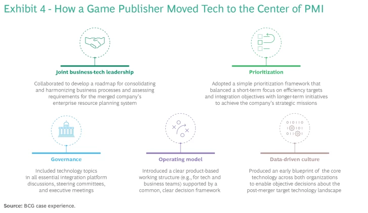 To move technology to the center of integration planning and management, companies should take action in several areas.